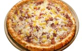 Taste the tropics with pineapple, ham, bacon and extra mozzarella cheese on our traditional red pizza sauce.