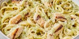 Grilled chicken strips on pasta with creamy basil pesto and finished with Pecorino Romano cheese. Half Order (Serves 6-8) Full Order (Serves 12-16)